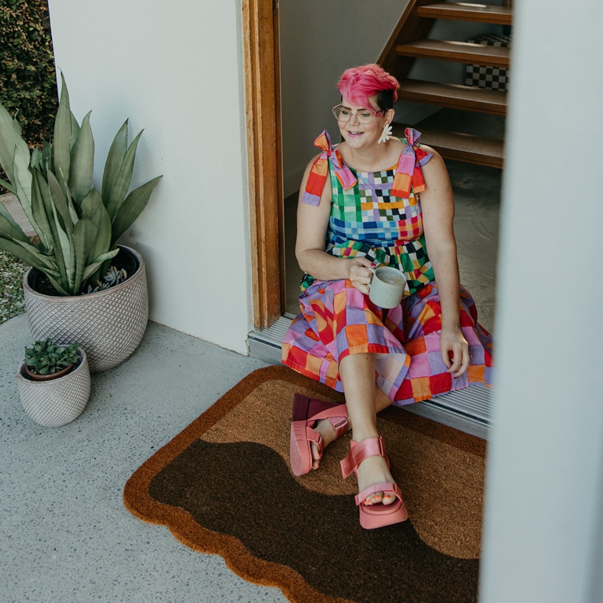 Sweet, warm, and universally loved. The Brownie Points Large Door Mat is the doormat equivalent of hearing “You look amazing!” every time you walk through the door. With her rich chocolate base and golden undertones, she’s the ultimate crowd-pleaser: charming, classic, and impossible not to like.
